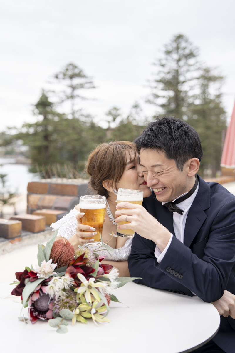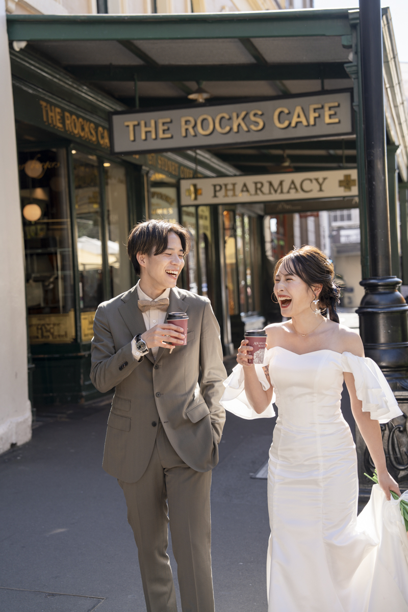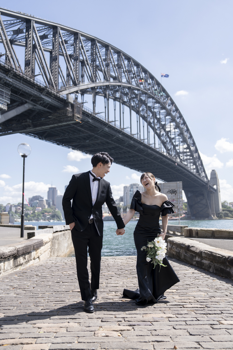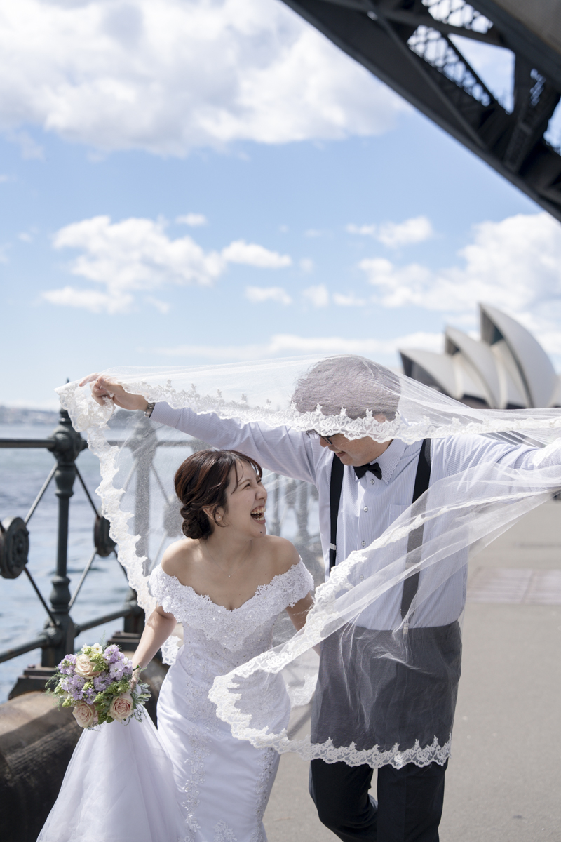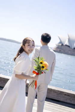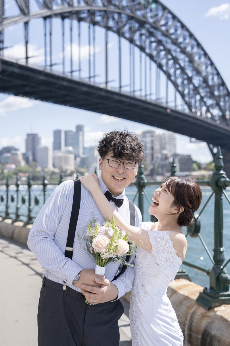 シドニーらしい風景での撮影だけのお客様から、ドレスやタキシードをレンタルしてヘアメイクさんにホテルに出張してもらいお支度をして、何箇所かロケーションを回って撮影・・・というお客様まで柔軟に対応しております。