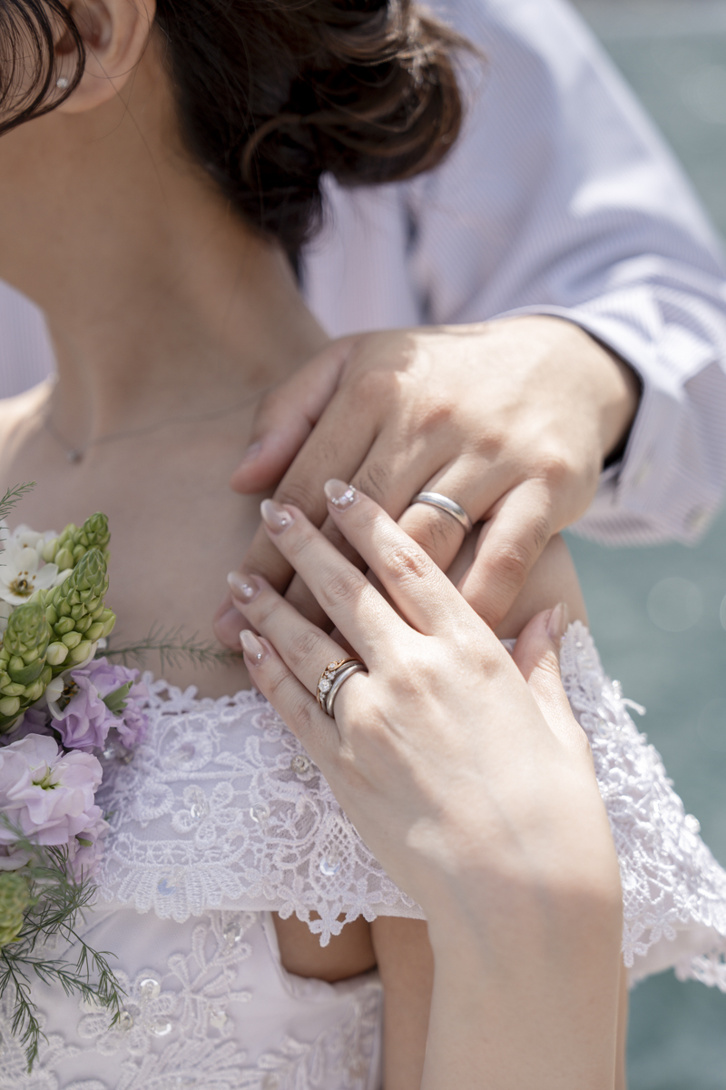 レンタルウェディングドレス&タキシードもご用意がございますので、荷物も少なく撮影にのぞんでいただけます。